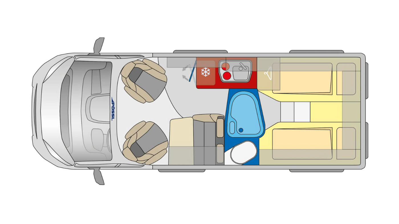 Les seves campers es fabriquen amb precisió alemanya i es caracteritzen per la seva versatilitat de distribucions, adaptant-se tant a parelles que busquen escapades de cap de setmana com a famílies que volen viatjar amb tot el confort. Pössl combina innovació constant amb solucions pràctiques que optimitzen l’espai interior, sense renunciar a l’estètica ni a la durabilitat.
