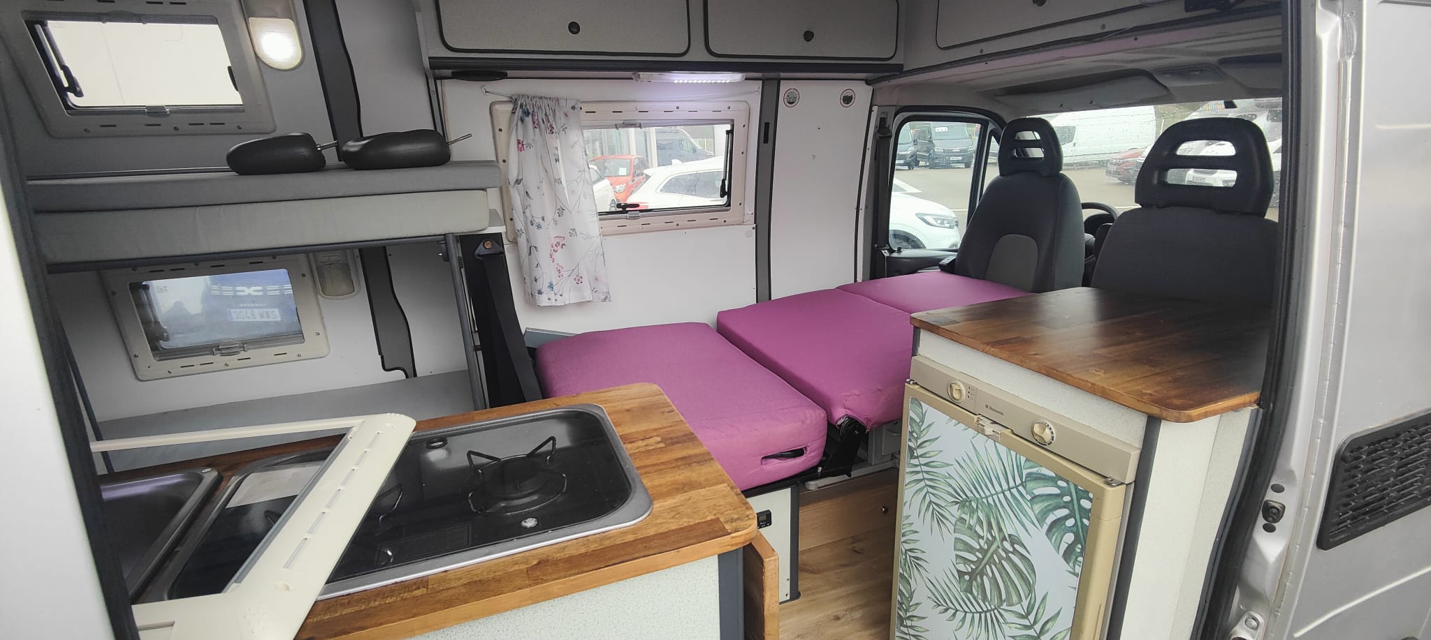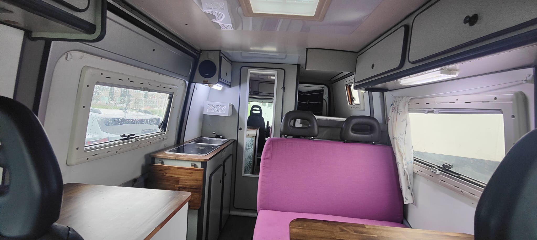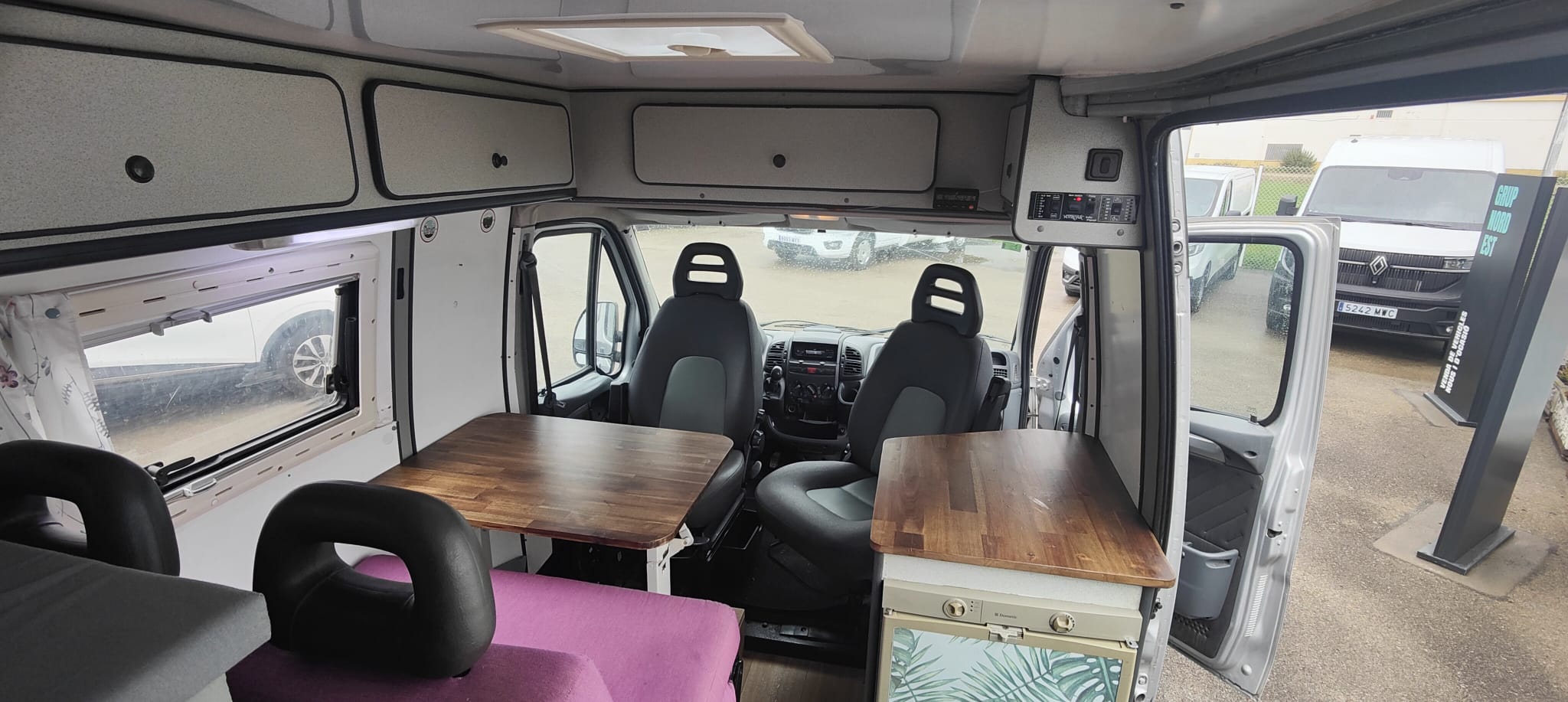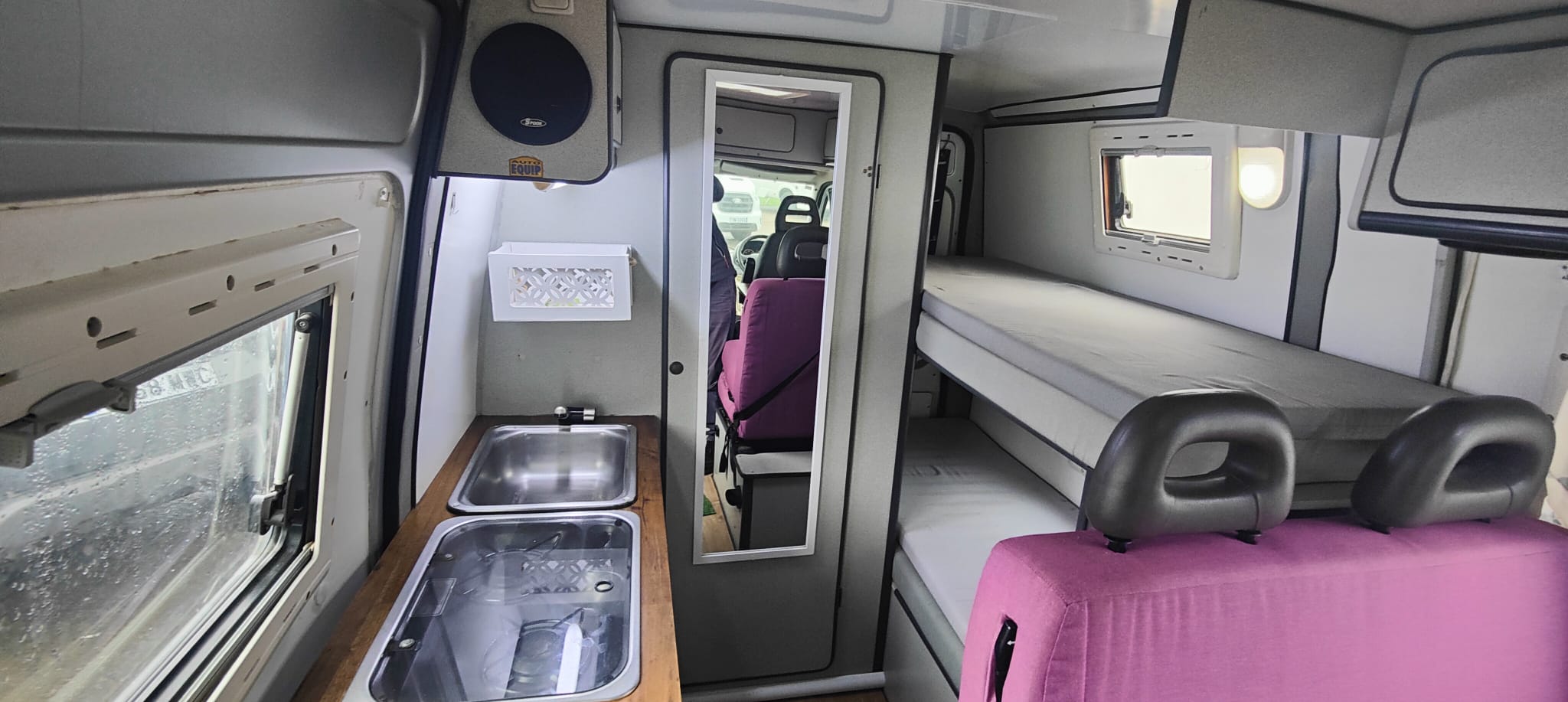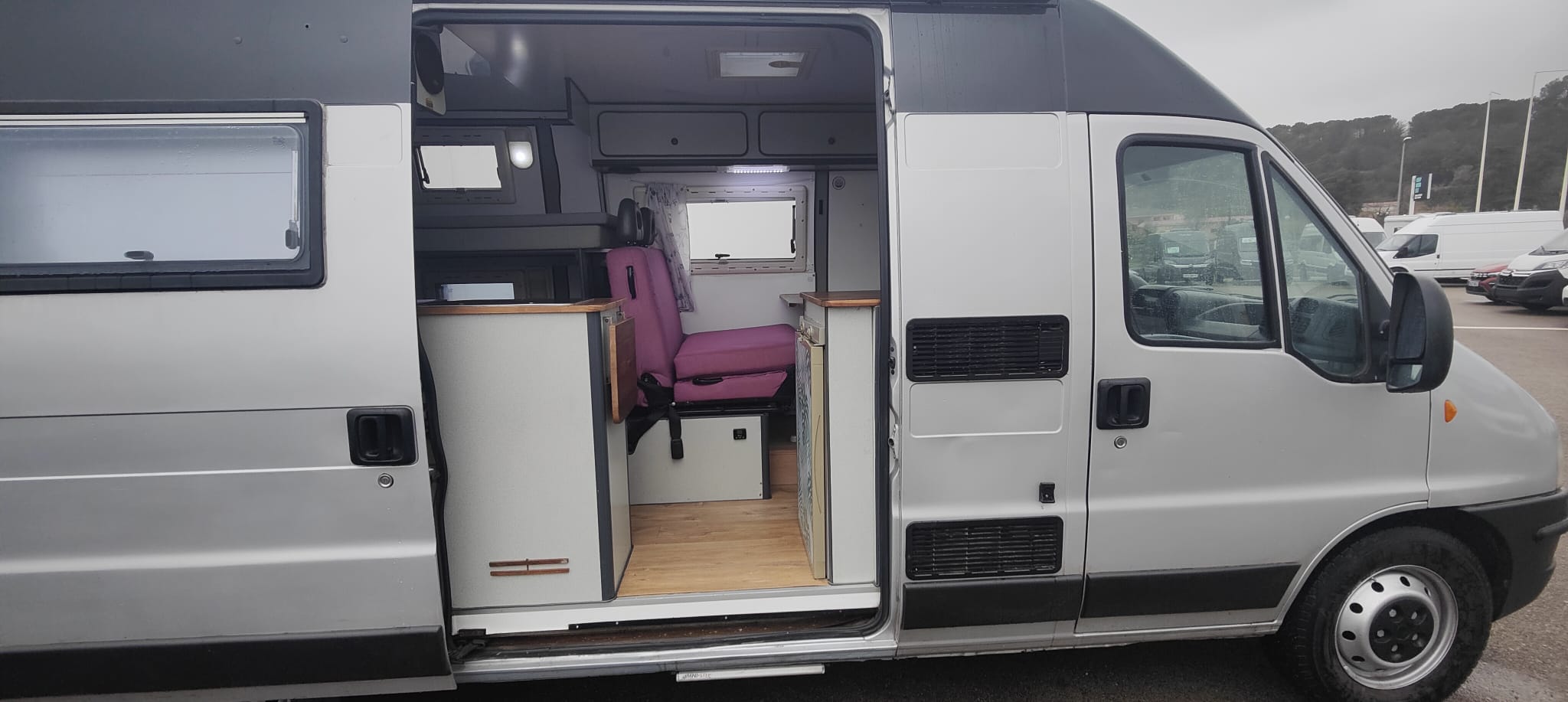 Ofereix fins a 4 places per dormir, amb lliteres i saló convertible, cuina de gas i bany complet amb dutxa i WC químic. Incorpora calefacció a gasoil Eberspacher i plaques solars amb inversor, garantint autonomia durant tot l’any.