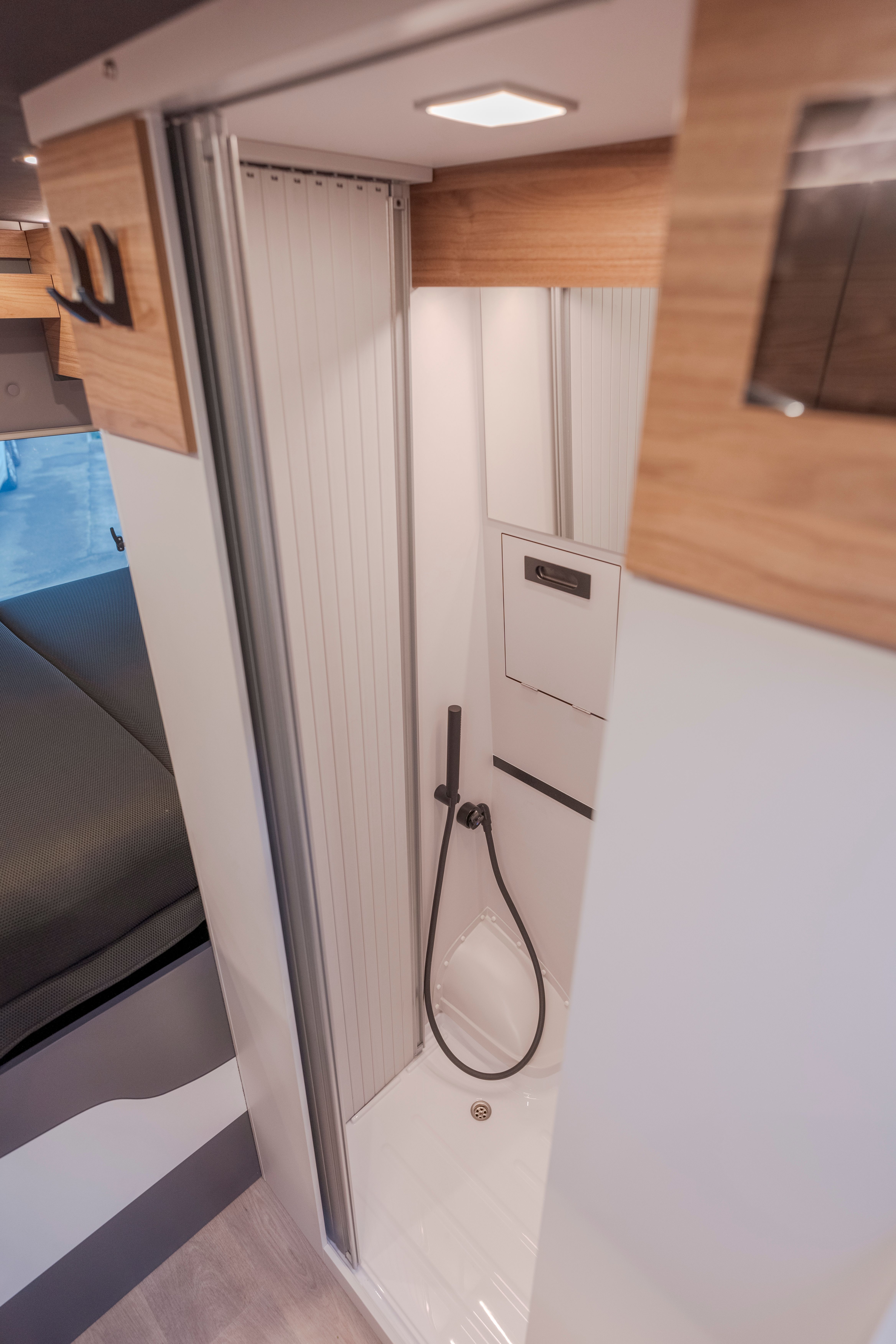 A l’interior, combina elegància i funcionalitat, amb cuina equipada, bany amb dutxa i WC extraïble i espais pensats per oferir el màxim confort.