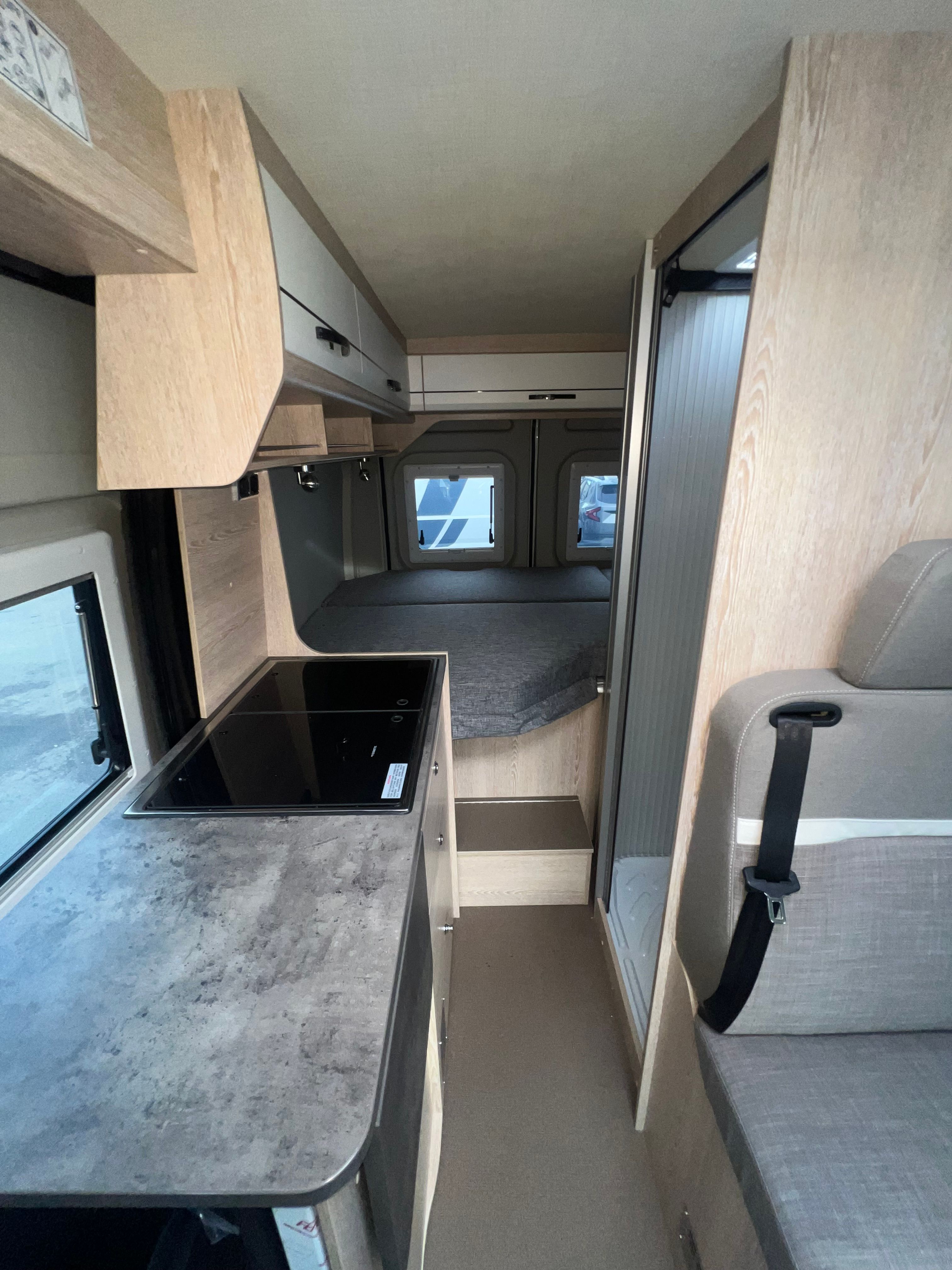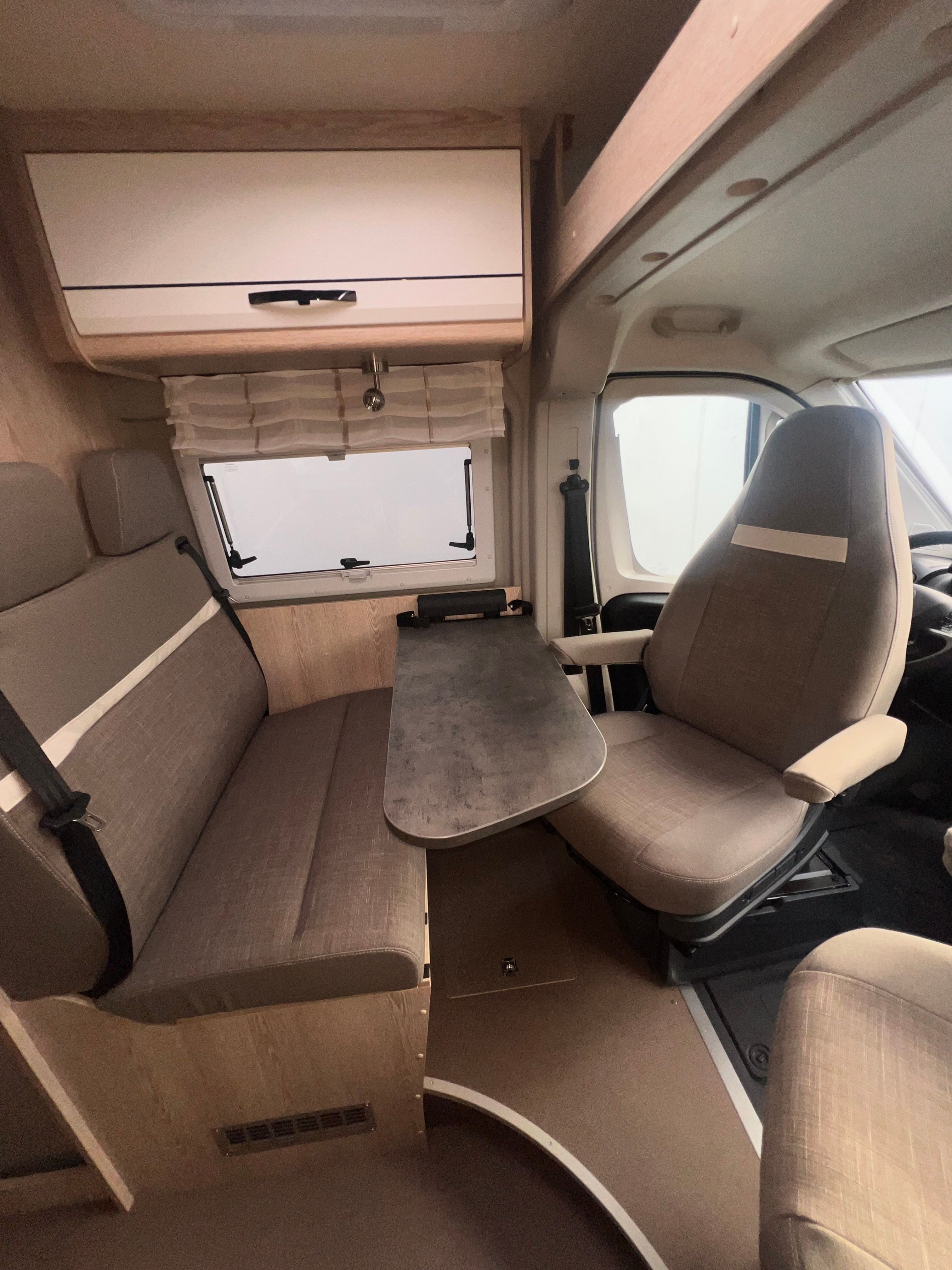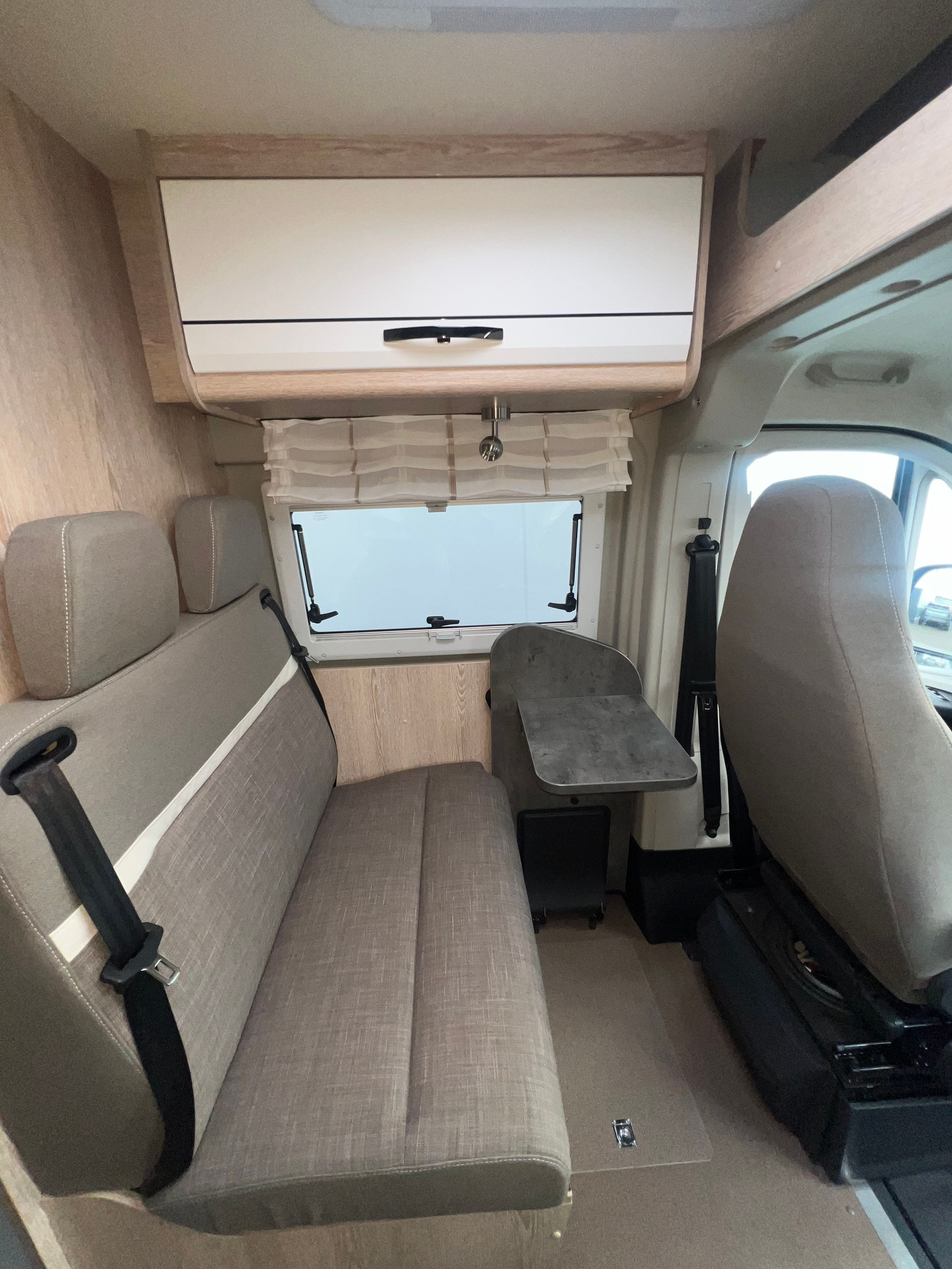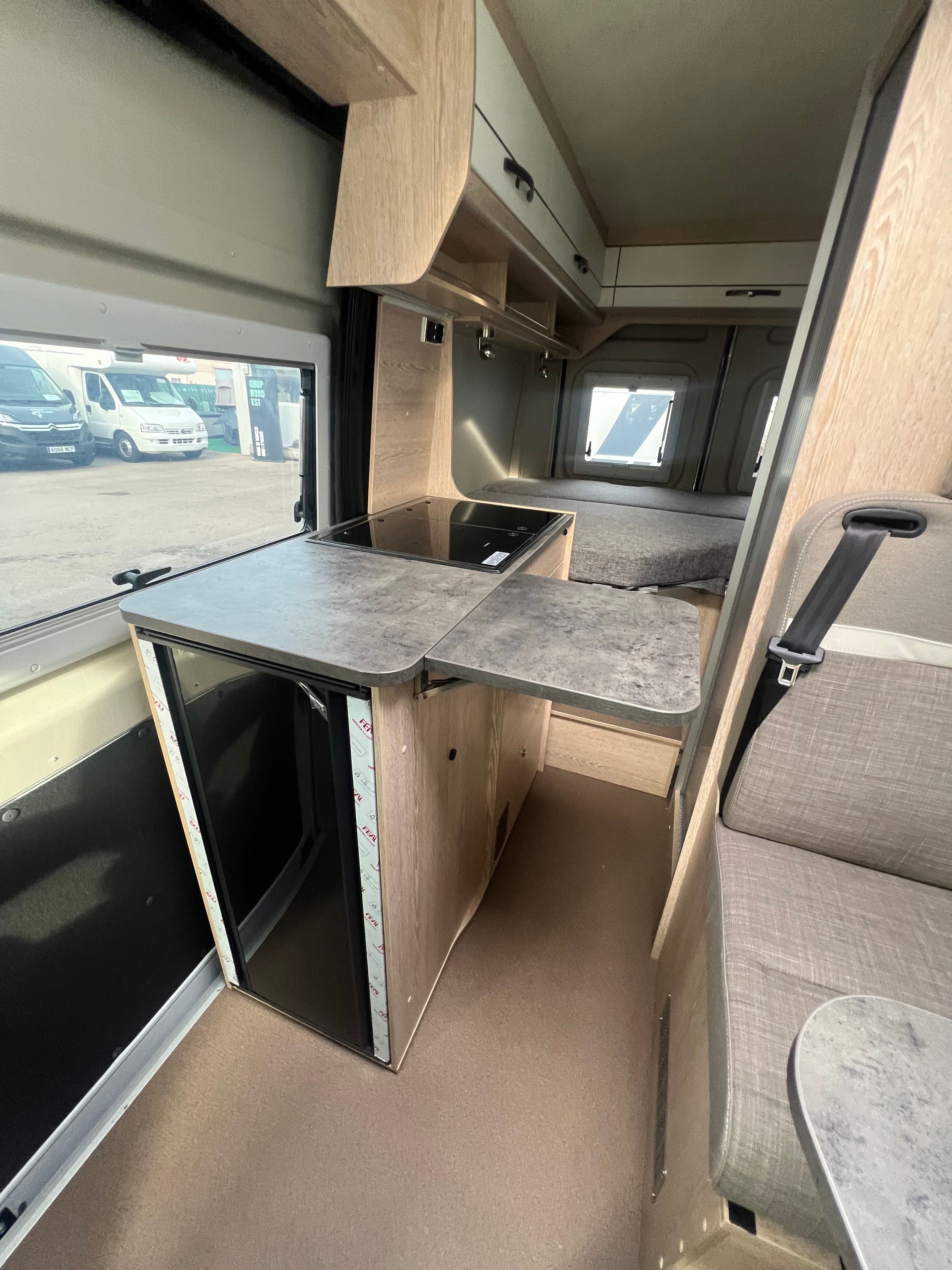 A l’interior incorpora seients davanters giratoris, cuina de 2 focs amb encès piezoelèctric i nevera de 100 L amb congelador, a més d’un bany complet amb dutxa i vàter giratori. Per gaudir-ne tot l’any, equipa calefacció i aigua calenta Truma Combi 4, dipòsit d’aigua neta 100 L i d’aigües grises 110 L, amb càrrega útil aprox. 820 kg i motor 2.2 turbodièsel Euro 6d (A/C i control de creuer segons versió).