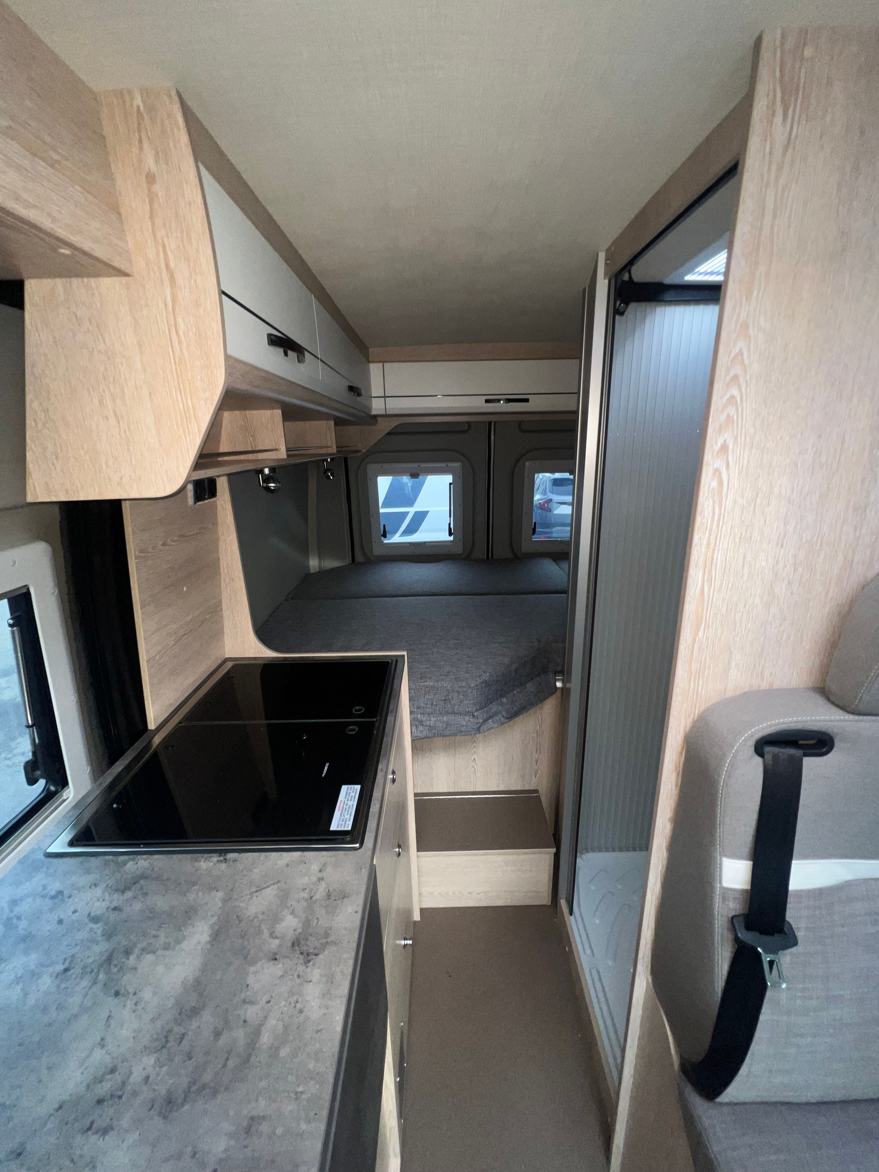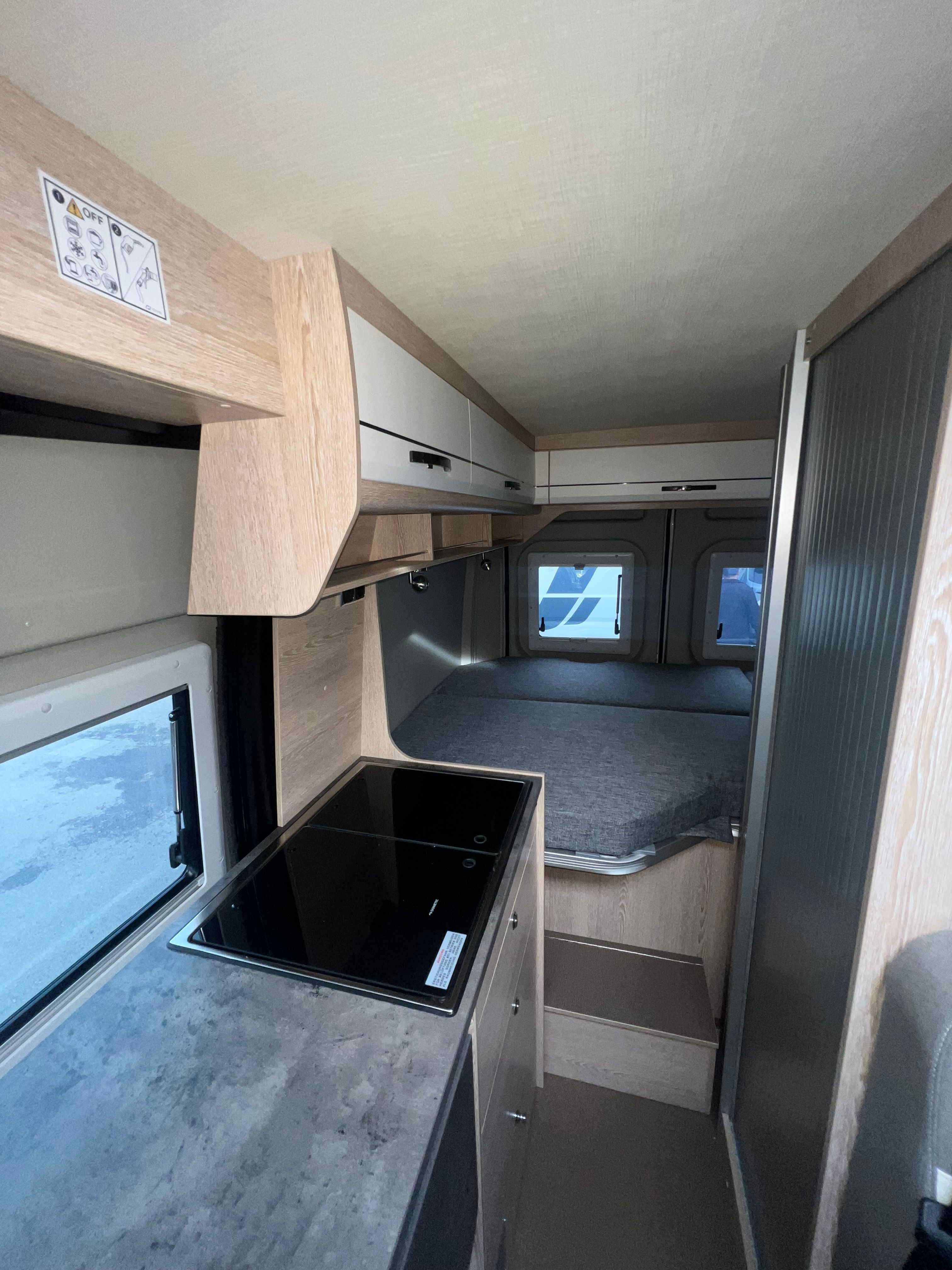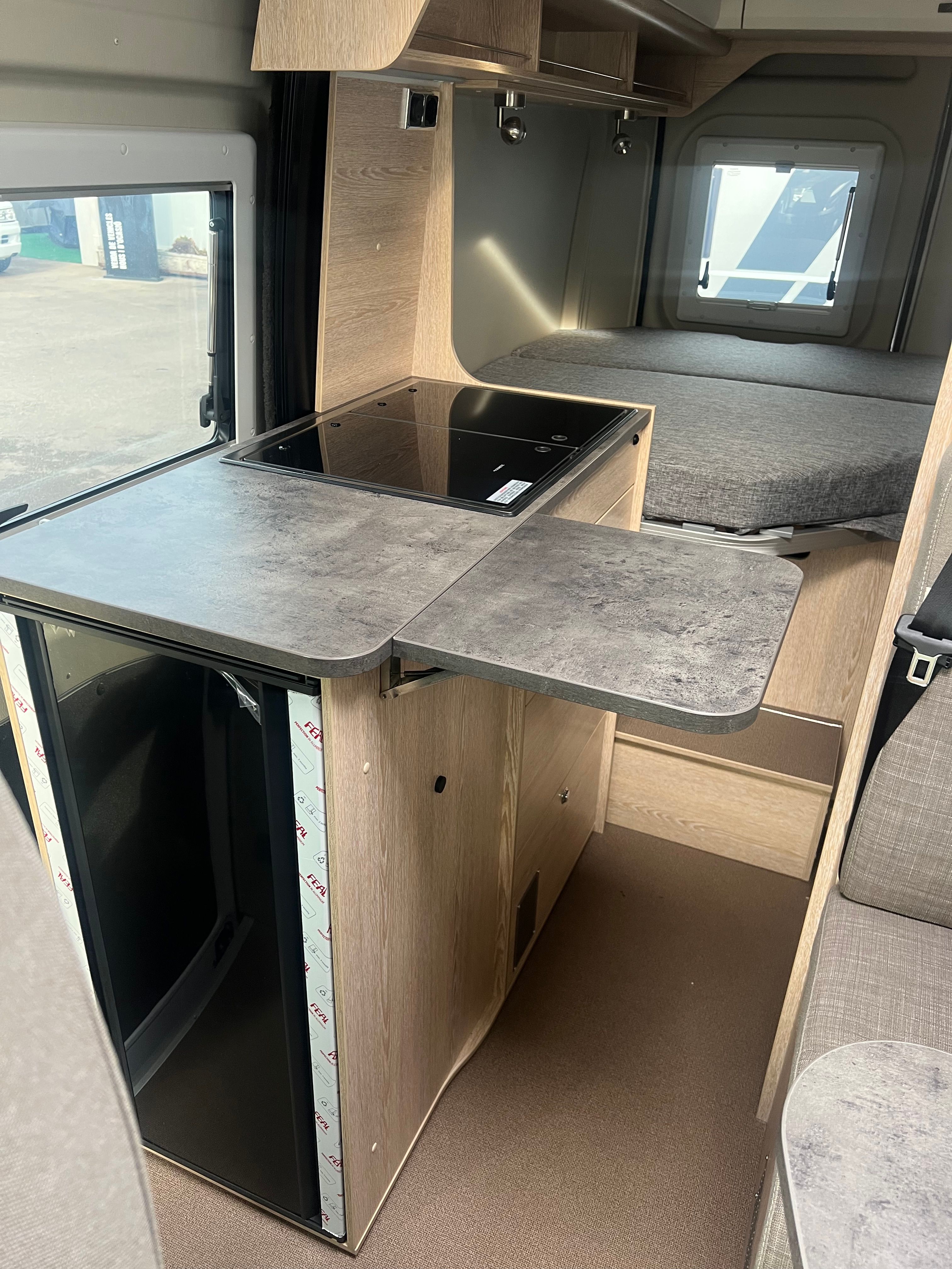 A l’interior incorpora seients davanters giratoris, cuina de 2 focs amb encès piezoelèctric i nevera de 100 L amb congelador, a més d’un bany complet amb dutxa i vàter giratori. Per gaudir-ne tot l’any, equipa calefacció i aigua calenta Truma Combi 4, dipòsit d’aigua neta 100 L i d’aigües grises 110 L, amb càrrega útil aprox. 820 kg i motor 2.2 turbodièsel Euro 6d (A/C i control de creuer segons versió).